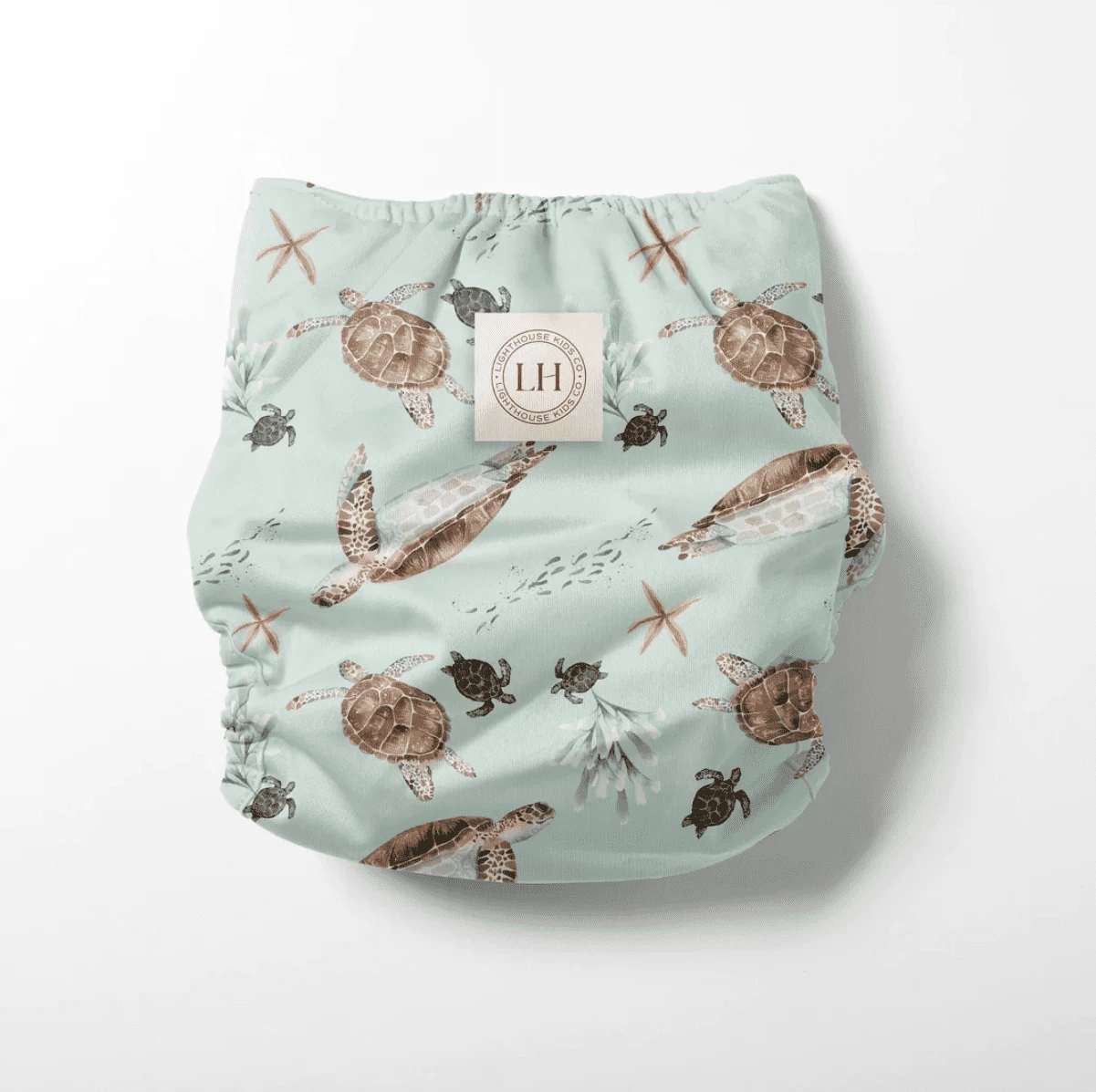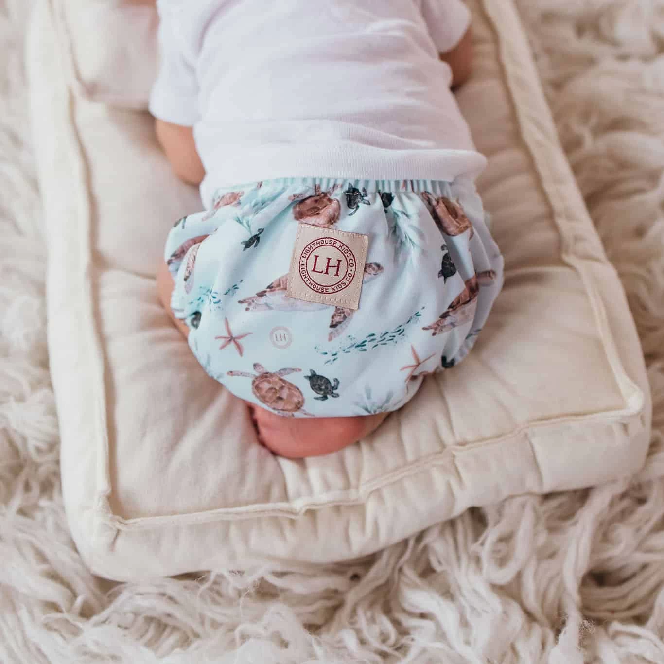 The LKC All-In-One Cloth Diaper | Reusable Diaper – Mountain Range – Peekaboo SeaGreen with Athletic Wicking Jersey AWJ – is super soft and stretchy!