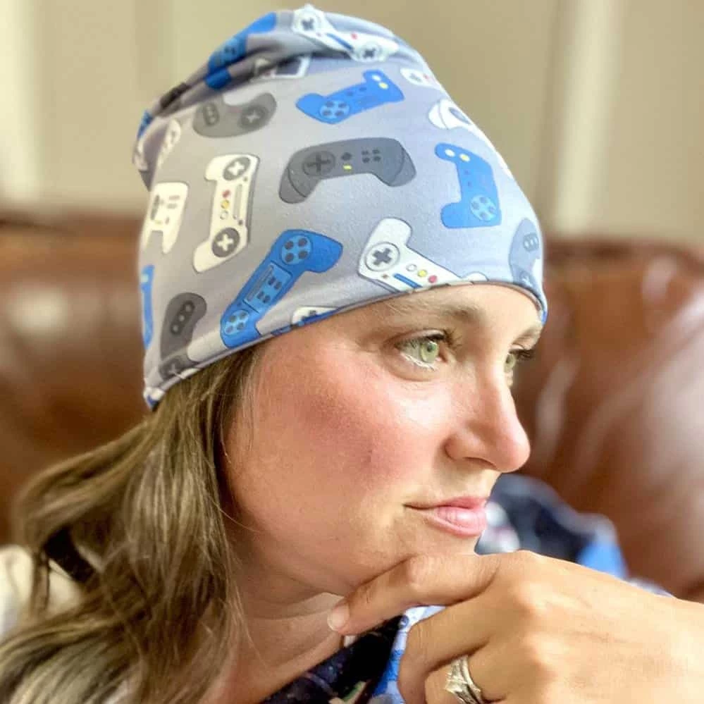 Beanies may be machine dried on low or medium heat with like fabrics. Washing or drying with rough fabrics or velcro items may cause snags or pulls.