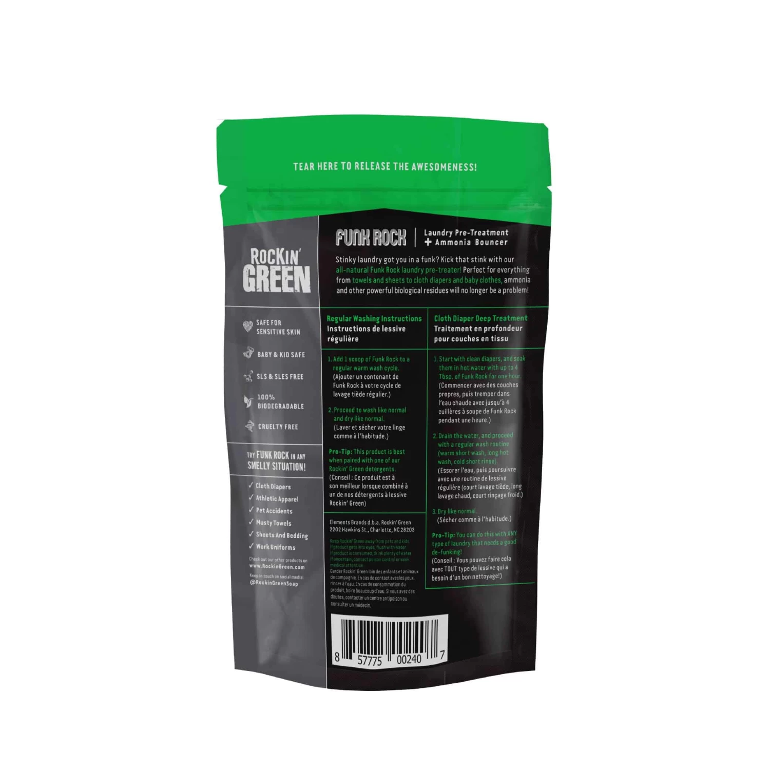 This 100% natural laundry pre-treatment is unlike anything you have tried before. It targets funk at the source and leaves no prisoners. Just add 1Tbsp of Funk Rock to a pre-wash cycle to eliminate stinky build up and keep it from coming back, or use a couple of tablespoons in a deep cleaning soak as needed for an intense cleaning treatment.