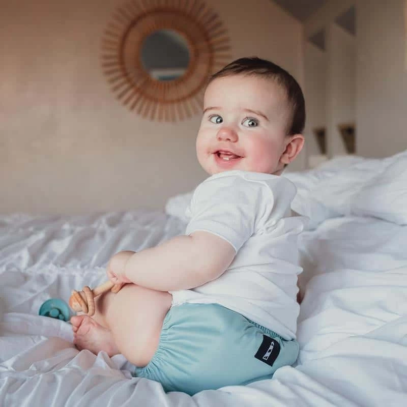 The universal insert attachment means that you can use any insert with your cover. Double leg gussets means that baby’s mess is safely contained inside the diaper.