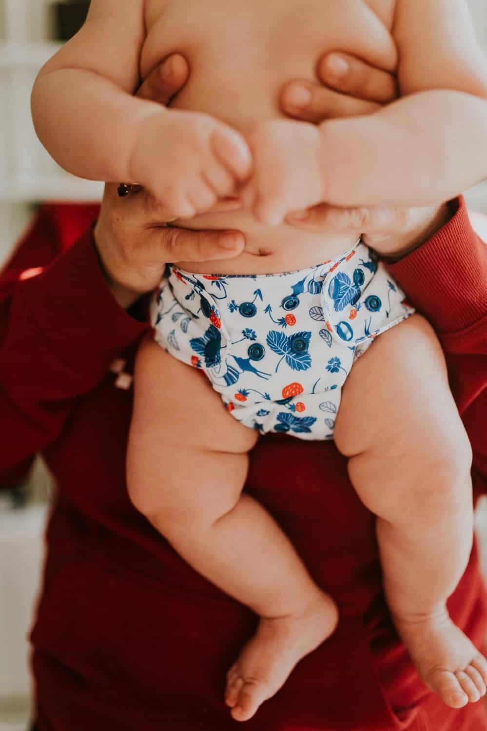 Adjust the rise snaps prior to putting the diaper on the baby.
