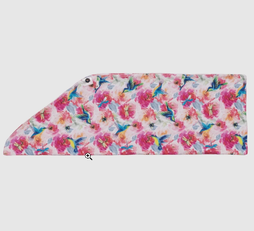 Headbands may be machine dried on low or medium heat in a lingerie bag or with like fabrics. Washing or drying with rough fabrics or velcro items may cause snags or pulls