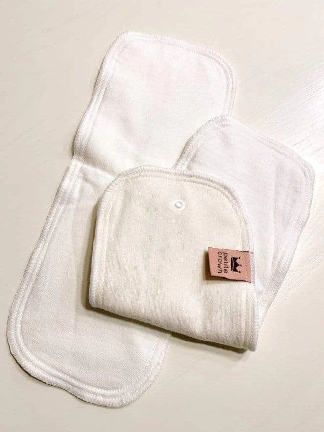 - Trima removable snap-on inserts, each made of 1 layer of bamboo cotton fabric and 2 layers of hemp cotton fabric